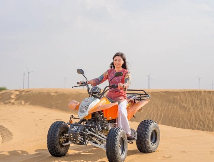 In Jaisalmer, one of the most adventurous and fun activities is riding Quad Bikes. Experience the sheer thrill of riding a quad bike in Jaisalmer. The fresh breeze and the golden hue reflecting upon the desert of Jaisalmer and the golden sky will make the scene a stunner one. For an out of the box experience, ride over the sand dunes and don’t mind flipping over!
